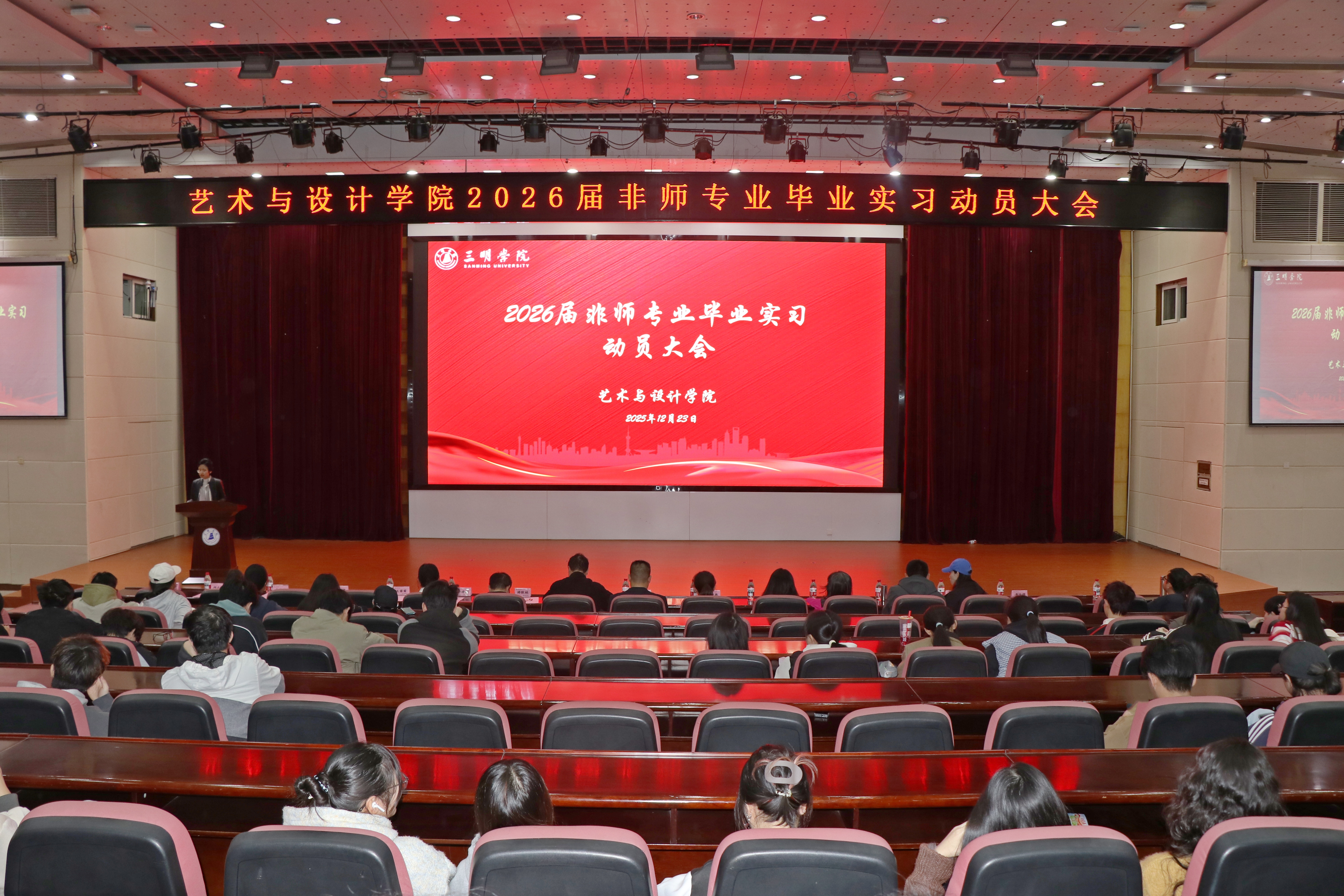 12月23日,艺术与设计学院在行政楼附楼二楼学术报告厅召开2026届非师专业毕业实习动员大会暨就业工作推进会。学院党委副书记游耿林、教务科、系主任、毕业实习指导老师、毕业班辅导员、全体2026届毕业生参加大会。