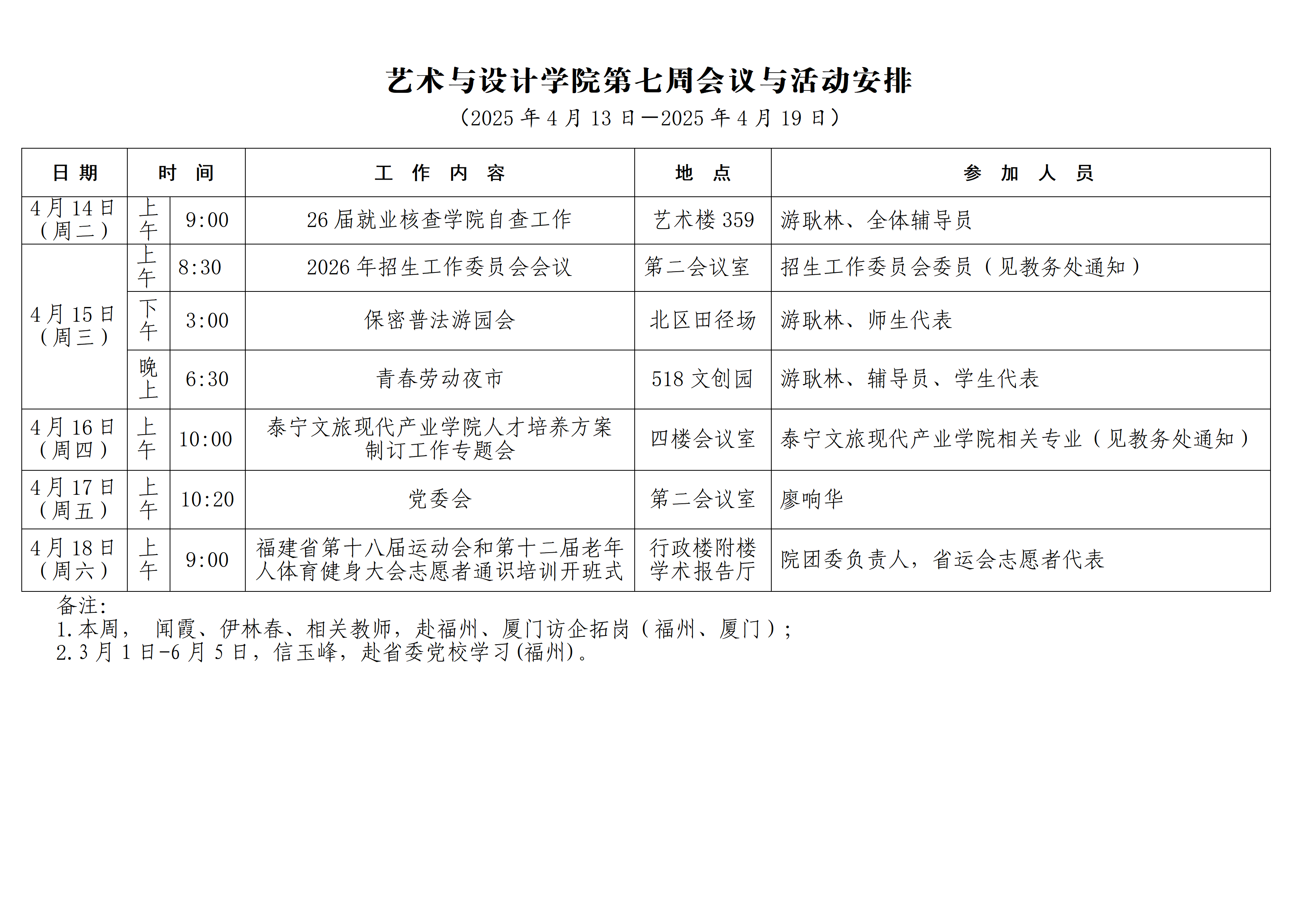 第七周会议与活动安排(2026年4月13日-2026年4月19日)