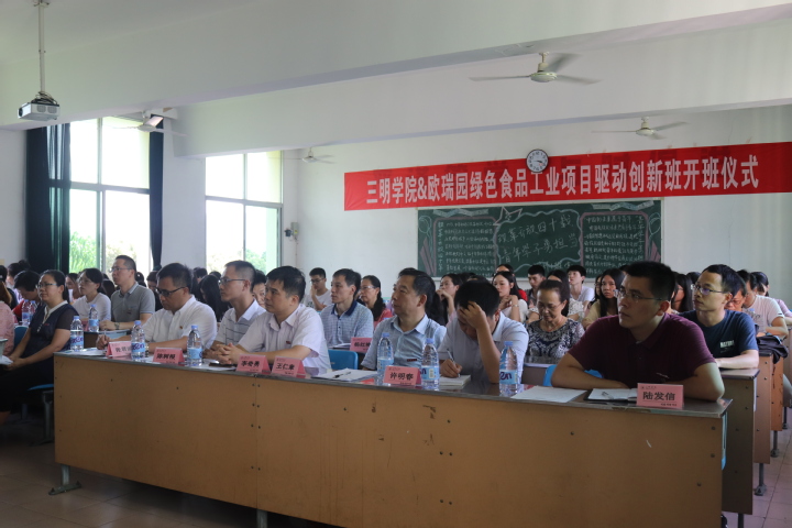 7月9日,我校与福建欧瑞园食品有限公司联合组建的“三明学院&欧瑞园绿色食品工业项目驱动创新班”在理工二A307教室举行开班仪式。副校长张君诚、福建欧瑞园食品有限公司总经理陈树根以及教务处、校团委、资源与化工学院、海峡动漫学院、机电工程学院、管理学院、双创学院等单位负责人及创新班全体学员参加了活动。